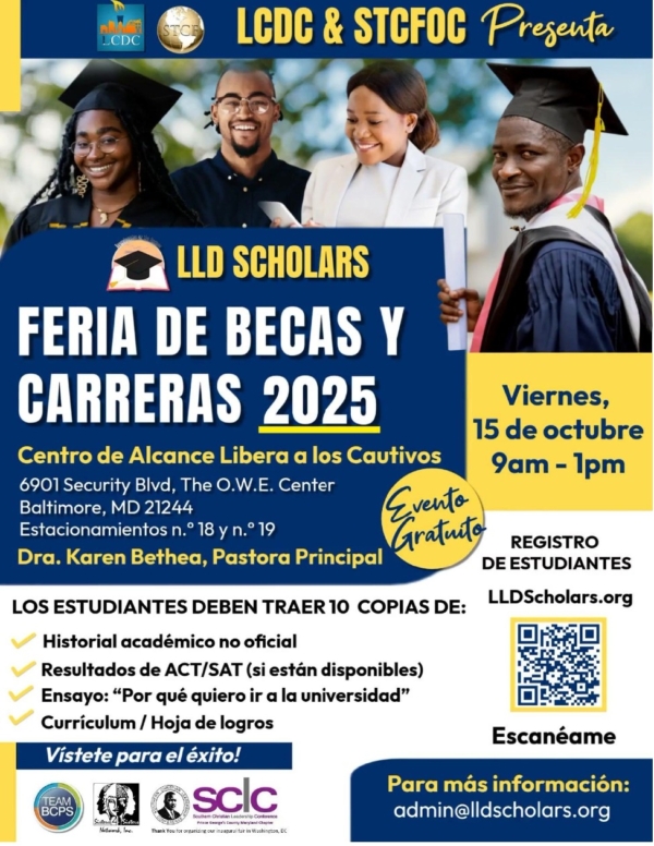 ATTENTION ALL HIGH SCHOOL STUDENTS & PARENTS / GUARDIANS ⭐ The College Scholarship & Career Fair, hosted by LLD Scholars, is coming to Baltimore and you don’t want to miss it! Mark your calendars NOW – The fair will be held here at STCF on Wed., October 15th from 9 AM to 1 PM.