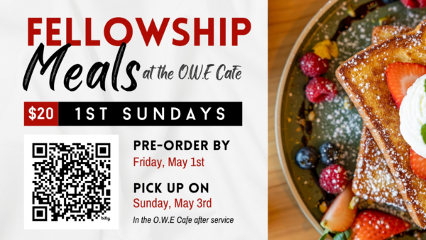 “Fellowship Meals at The OWE Cafe” are available on the 1st Sunday of each month directly after service.