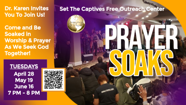 “I fast, I pray, I hear, I obey.” is our STCF motto and soldier’s creed for 2026! – Mark your calendars and join Dr. Karen for the upcoming Prayer Soaks on Tuesdays, April 28th, May 19th, and June 16th from 7 PM to 8 PM. Come and be soaked in worship and corporate prayer, where we will seek the face of God together.