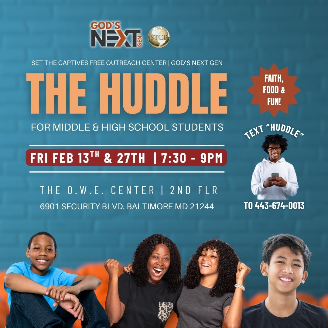 Attention All Middle & High School Students – God’s Next Gen Youth Ministry invites you to “The Huddle” on Friday, February 27th at 7:30 PM in the “The Lounge” at The O.W.E. Center. It’s the ultimate hangout for teens filled with fun, food, fellowship, and a chance to connect with friends. Be encouraged as we dive into real conversations about faith, life, and growing in your relationship with Christ and each other. Come ready to learn, laugh, and grow! ALL ARE WELCOME: Invite A Friend & Don’t Miss Out!