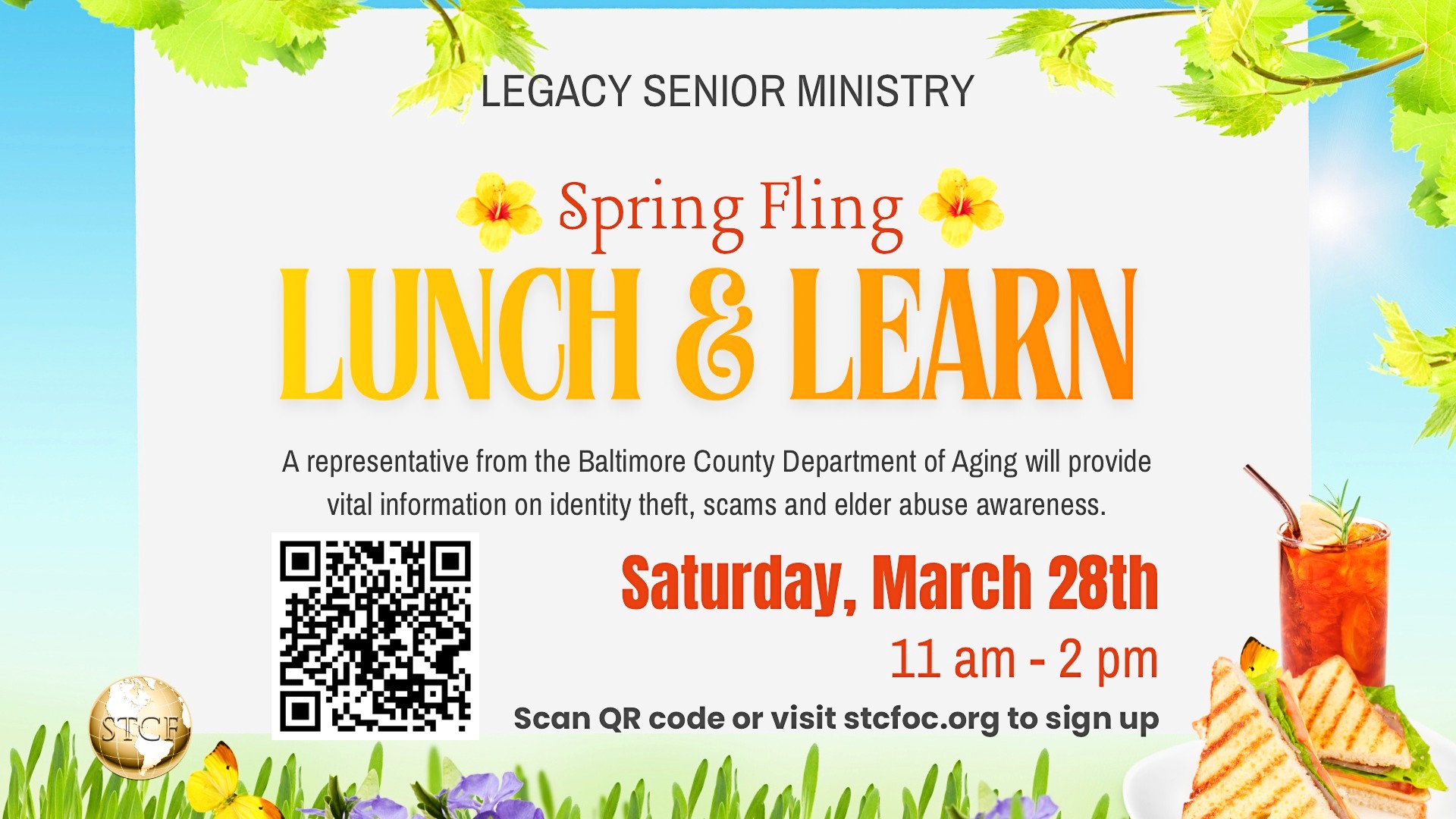 The Legacy Senior Ministry will host a Spring Fling Lunch & Learn on Saturday, March 28th from 11:00 AM - 2:00 PM